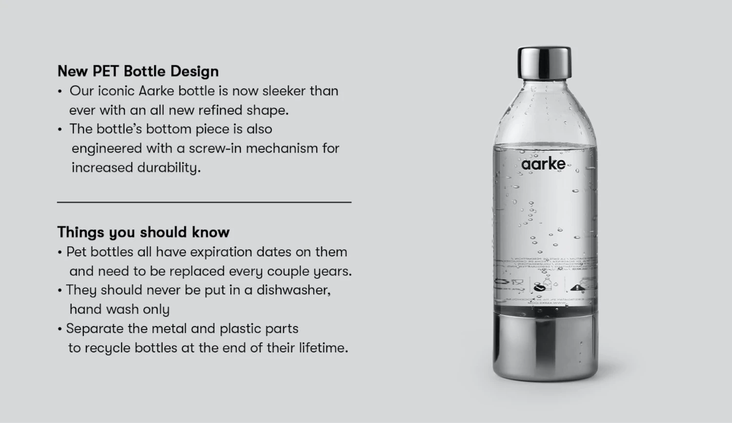 Want to contribute to a better environment? One Aarke water bottle can replace thousands of single use plastic bottles. This water bottle is specifically designed to withstand high pressure from the Aarke carbonator.