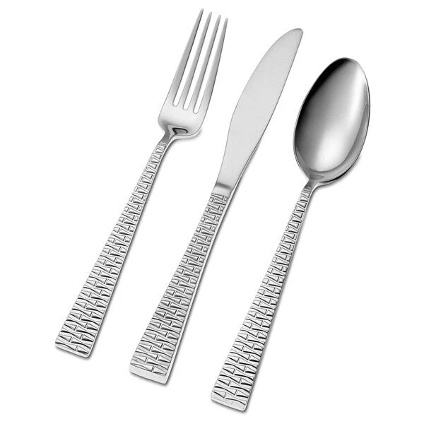 Exquisitely modern, Trillion shines with geometrically inspired sculpting. Brilliantly polished to a mirror finish, this 45-piece set includes 8 dinner forks, 8 dinner knives, 8 dinner spoons, 8 salad forks, and 8 teaspoons and 1 solid serving spoon, 1 slotted serving spoon, 1 cold meat server, 1 sugar shell and 1 butter spreader. Pattern style: Modern Materials: 18/10 stainless steel Finish: Mirror Handle material: Stainless stee