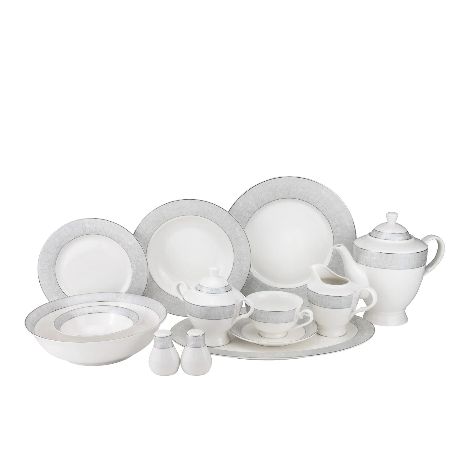 - Beautiful 57-piece dinner set packaged in a gift-box