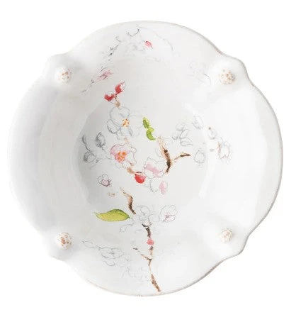 From the Berry & Thread Collection, this subtly scalloped, deep cereal/ice cream bowl ties in our new Cherry Blossom imagery, perfect for piling your clusters of granola goodness or sundae accouterments to the very rim.