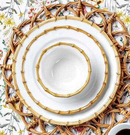 From the Classic Bamboo Collection- Natural textures are immediately welcoming. Our bamboo trim exudes casual elegance that lends a dash of international flair to the table and mixes easily with other collection.