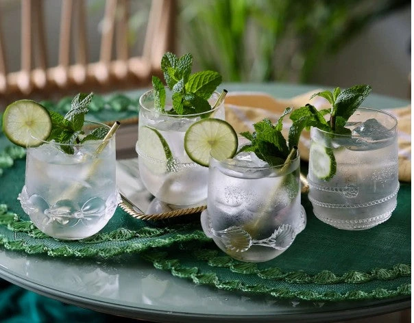 This sparkling set of quintessential entertaining glasses features a different signature motif for each hand-blown piece to create a foursome that is as handsome as it is unique. Wonderfully adaptable for water, juice or cocktails, this tumbler glass feels great in the hand and makes a pretty statement in any setting thanks to its cascading spiral of our iconic Amalia thread.