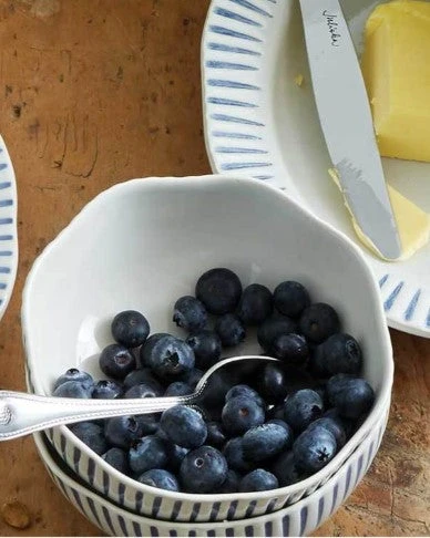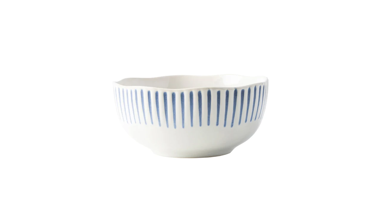 Equally stunning and simplistic, radiant stripes in breezy shades of blue adorn this dinnerware collection. This cereal/ice cream bowl is a go-to size and perfect for any soup, salad or dessert you can imagine.