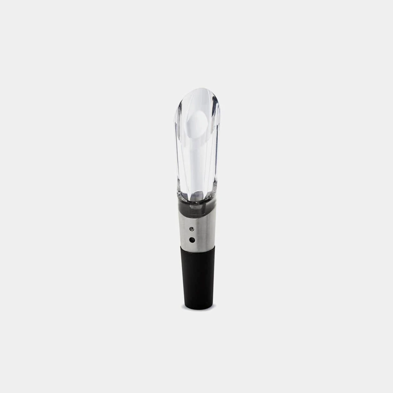 Aerating your wine is a secret to making a more drinkable and flavorful glass of wine. Allowing wine time to breathe enhances wine’s flavor, but when you don’t have time to wait, an aerator can provide oxygen to the wine more quickly. The Super Aerator allows you to pour the wine from the bottle straight to the glass improving the wine’s flavor on the way. It sits securely in the bottle and its sleek design will be a welcomed addition to your wine tool collection. Simply uncork your wine, insert the Super Aerator, and pour a perfectly aerated glass of your favorite wine.