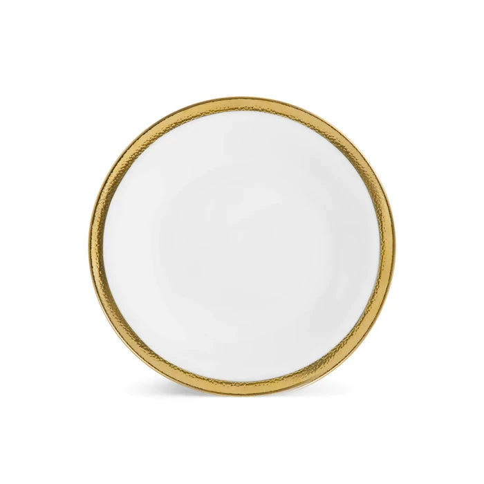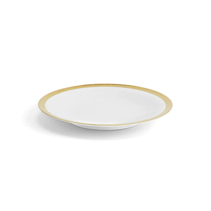 The Michael Aram Goldsmith Collection is an homage to the simple beauty of the metal forger’s craft. Hammertone techniques have been a cornerstone in jewelry and metal crafting for millennia, and each mark bears silent testament to the skill of the craftsman. The Goldsmith Collection of fine porcelain strives to capture the random and organic feeling of this age old process. The porcelain is also designed to integrate perfectly with any of Michael’s other dinnerware patterns. The unified body shapes used in all of the motifs make mixing and matching the patterns a seamless proposition.