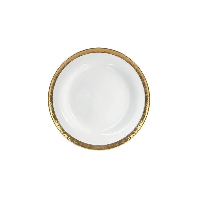 The Michael Aram Goldsmith Collection is an homage to the simple beauty of the metal forger’s craft. Hammertone techniques have been a cornerstone in jewelry and metal crafting for millennia, and each mark bears silent testament to the skill of the craftsman. The Goldsmith Collection of fine porcelain strives to capture the random and organic feeling of this age old process. The porcelain is also designed to integrate perfectly with any of Michael’s other dinnerware patterns. The unified body shapes used in all of the motifs make mixing and matching the patterns a seamless proposition.