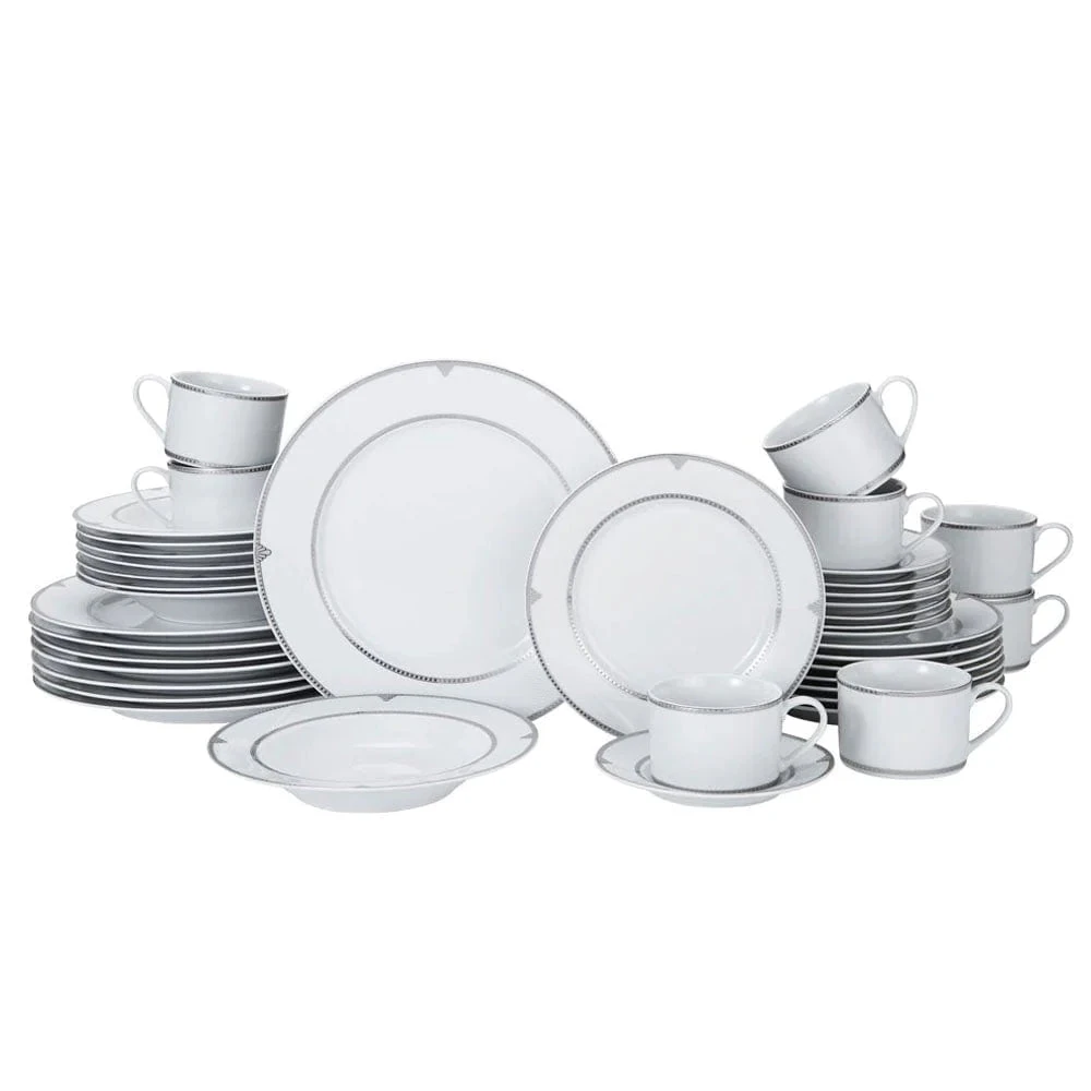 • Dinnerware set for 8: This 40 piece dinnerware set includes (8) each of: 10-1/2 inch dinner plate, 8 inch salad plate, 8-1/4 inch diameter rim soup bowl, 6-1/4 inch tea saucer and 8 ounce tea cup
