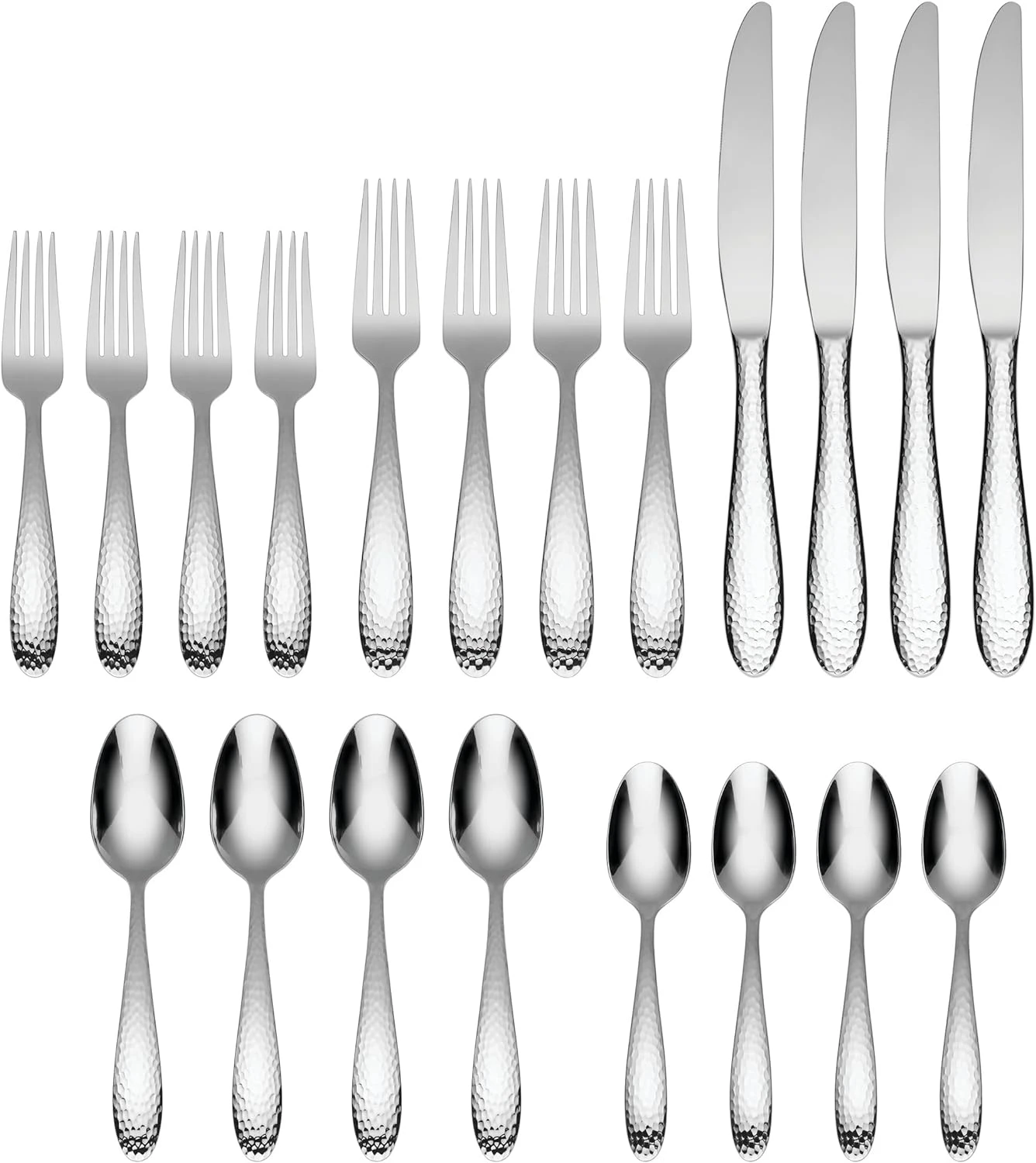 - INCLUDES: This Oneida silverware set includes: (4) Dinner Knife, (4) Dinner Fork, (4) Salad Fork, (4) Dinner Spoon and (4) Teaspoon silverware set contains
