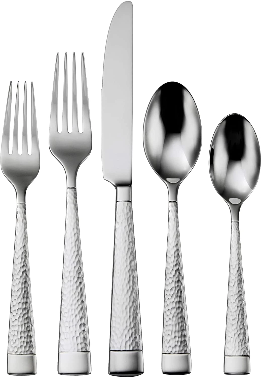 - A unique hammered mirror finish combined with a classic shape and traditional banded tips will look great with your contemporary or traditional dinnerware. Set a table that is sure to turn heads and inspire company.