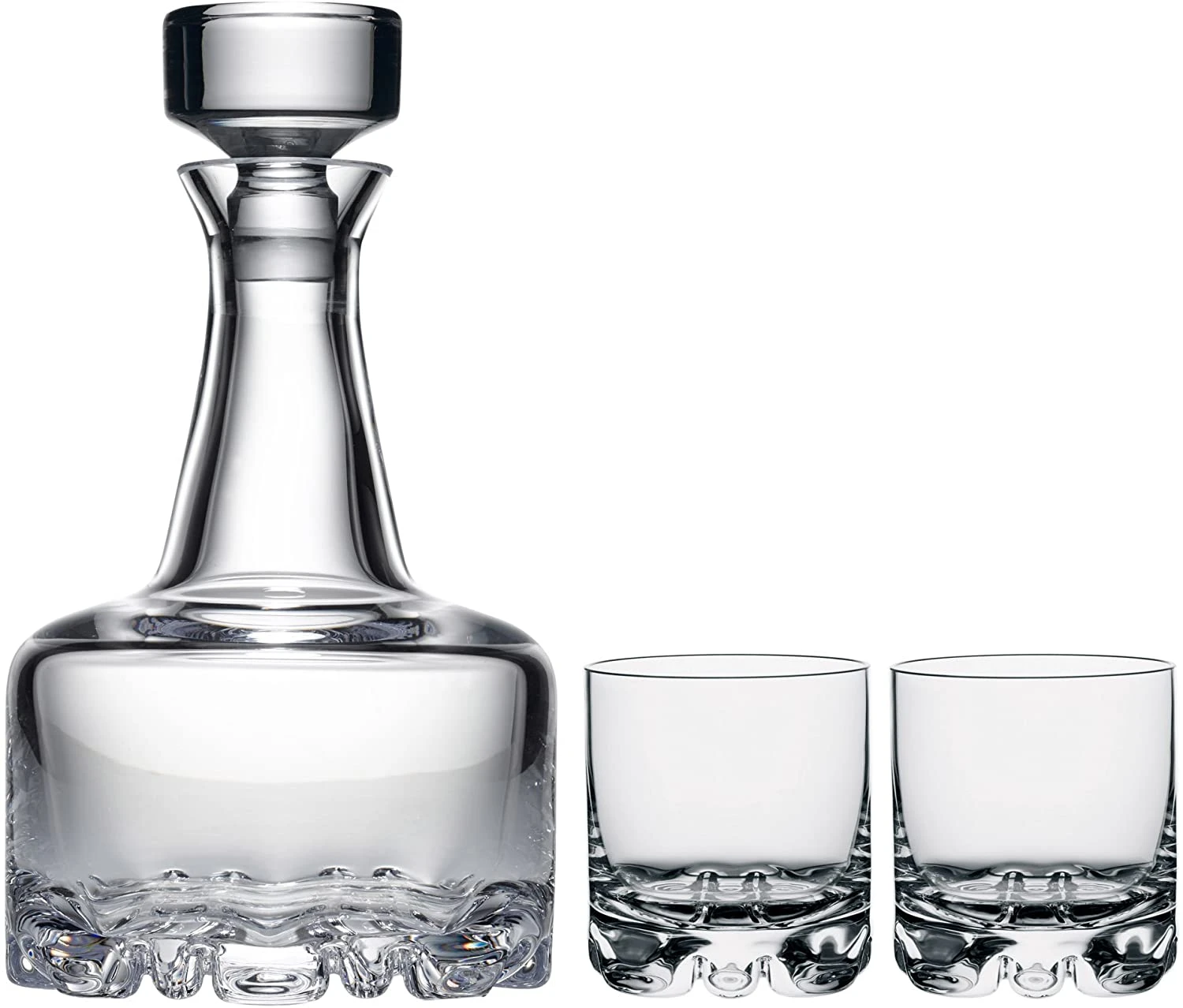 The Erik 3 Piece Set from Orrefors consists of one decanter and two DOF glasses. A perfect set for all whiskey enthusiasts appreciating modern 70s design distinguished by Scandinavian simplicity and clean lines. The decanter, holding 26 oz, allows the spirit to interact with oxygen which makes it easier for more nuanced aromas to develop. Serve spirits in the included Double Old Fashioned glasses, holding 12 oz.