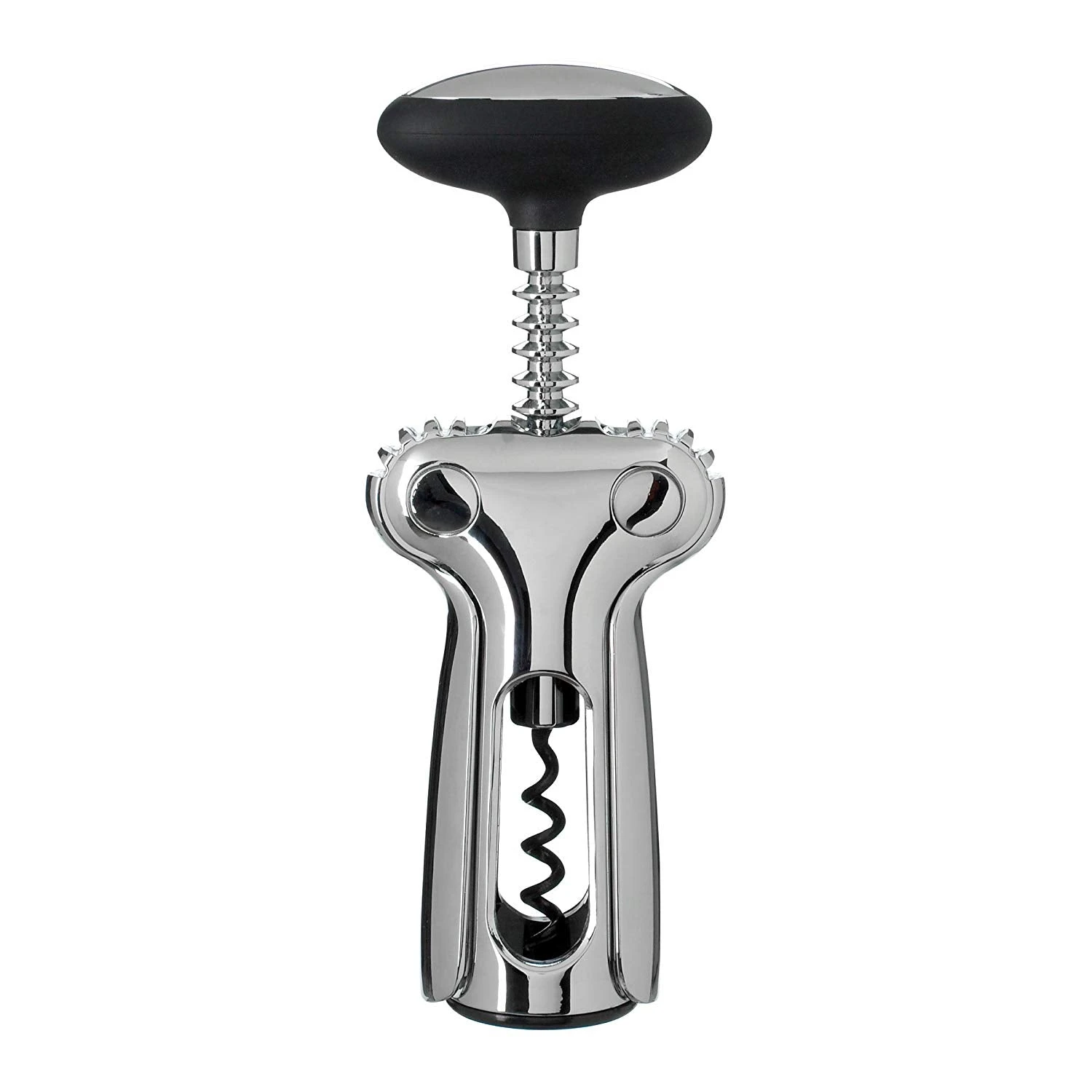 By turning the soft knob to thread the coated wire screw through a cork, the gear-driven wings rise up as the screw gets deeper into the cork. Simply push the wings down to release the cork. Feels substantial in the hand and looks elegant on the table. Swiftly pops the cork out of wine bottles