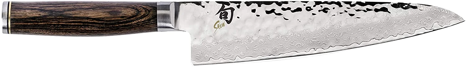 - From Shun’s Premier series; reminiscent of hand-forged knives from ancient Japan; crafted from advanced, industry-leading materials in over 100 individual steps; VG-MAX super steel core, fine-grained, strong, hard