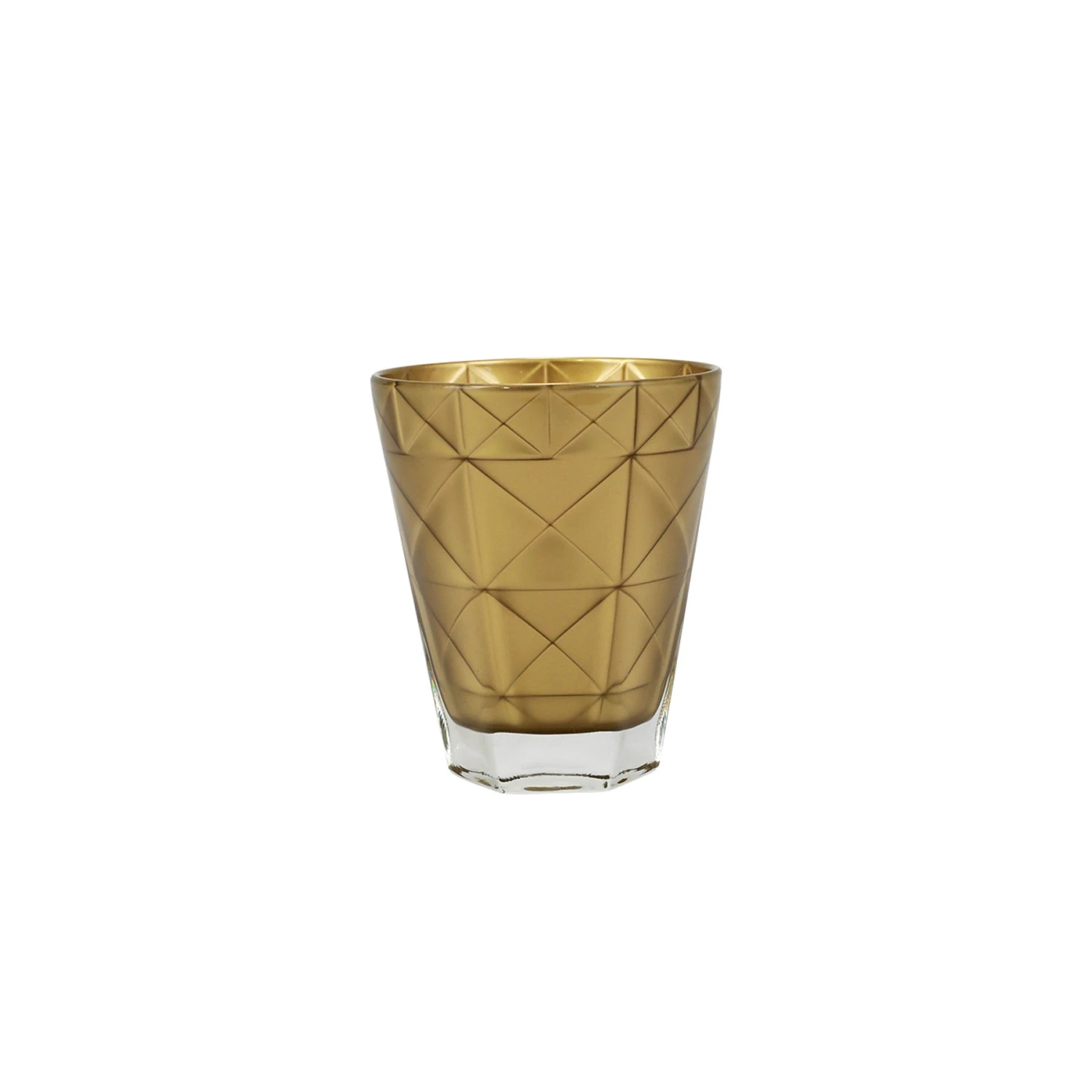 Etched crystal accents are complemented by a beautiful transparency on the Prism Gold Short Tumbler. Chic, simple, and stylish, this clear crystal drinking glass is perfect for everyday sips and midsummer soirées alike.