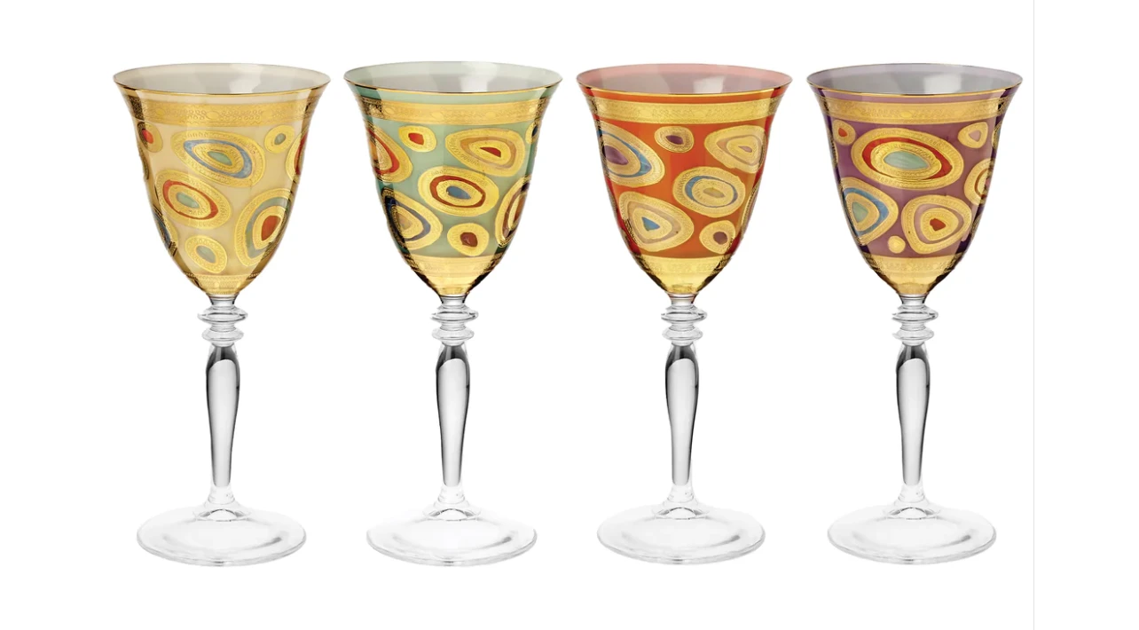 Ornate emblems and decorations that are indicative of royalty inspired this unique drinkware collection. The Regalia Assorted Wine Glasses – Set of 4 are hand-painted in 14-karat gold.