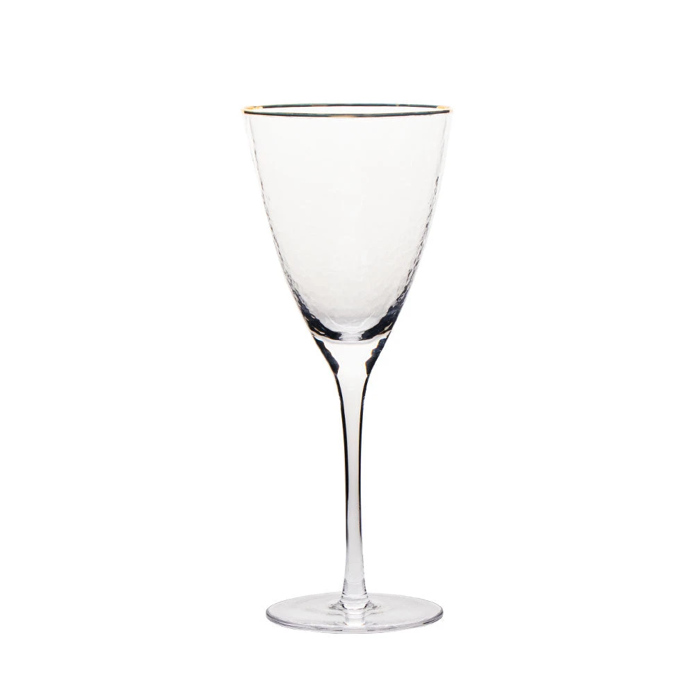 Vikko Decor – Gold Rim, Hammered Wine Glass, 11.5 Oz