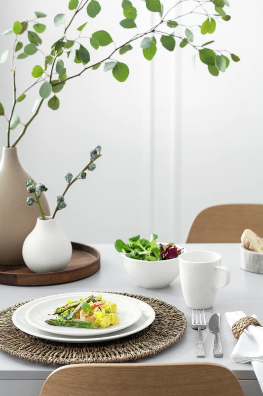 Perfect craftsmanship and a wealth of emotions: with Artesano Original and the aesthetic combination of Premium Porcelain and natural materials such as wood and slate, Villeroy & Boch is celebrating simple and clearly defined design. The practical salad plate is essential in the morning for breakfast and can also be used to serve cake or small snacks. Start the day with Villeroy & Boch. Premium Porcelain. Dishwasher Safe. Microwave Safe. Made in Germany. 8.5″ x 8.5″ x .75″
