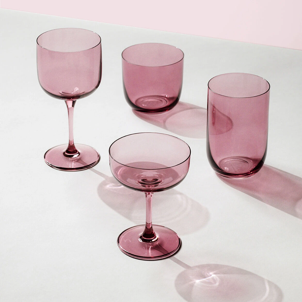 Coloured glasses as bright as life itselfEnjoy shared moments and celebrate life in all its great diversity – the glasses from the Like Glass collection playfully combine spontaneity and the urge to continuously discover new things. Happy mix & match is the motto for the coloured glasses. The result: moments that are as bright as life itself. With the coloured glass from the Like Glass collection, every moment becomes a small celebration. The modern, simple shape and delicate colour makes the glass a trend highlight – both in everyday life and on a perfectly presented table at your next dinner party. Celebrate life in all its wonderfully bright diversity – with Like Glass from like, by Villeroy & Boch. Set of 2, gift boxed. Choice of four colors: Sage, Grape, Clay, and Ice. Choice of four shapes: Juice Tumbler, Highball, Stemmed Wine, and Champagne/Dessert Stem. Juice Tumbler: 3.5″ x 3″ , Set of 2, Capacity approx 12.25 oz, made in Poland, hand wash recommended