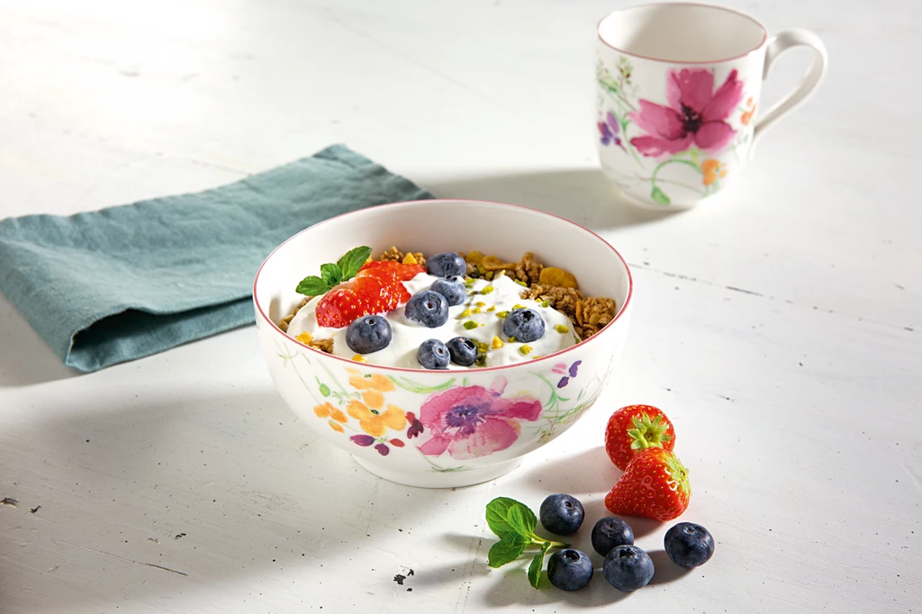 The fresh, bold colours of Mariefleur Basic will turn your table into a colourful sea of flowers. The elegantly curved shapes of the porcelain make preparing and serving your dishes twice as beautiful. Breakfast muesli, salads, soups or desserts: this pretty bowl is always the right choice. The perfect kitchen companion for every day. Premium Porcelain. Dishwasher Safe. Microwave Safe. 6″ x 5″ x 3″ , holds approx. 25 oz. Made in Germany.