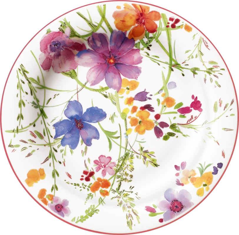 The fresh, bold colours of Mariefleur Basic will turn your table into a colourful sea of flowers. The elegantly curved shapes of the porcelain make preparing and serving your dishes twice as beautiful. The breakfast plate boasts versatility: the plate will accompany you all day long, whether in the morning for breakfast, in the afternoon for serving delicious cakes or in the evening for snacks. Spoil your loved ones with high-quality crockery. The Mariefleur design covers this entire Salad Plate. Premium Porcelain. Dishwasher Safe. Microwave Safe. 8.75″ x 8.75″ x 1 Made in Germany.