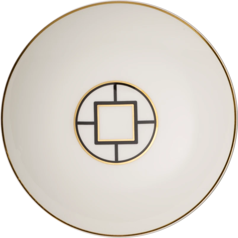 This stylish soup plate is also the perfect bowl for pasta or salad and will delight you for a long time with its brilliant pattern thanks to “Inglaze Gold” technology. Treat yourself to urban design and delight your guests. Premium Bone Porcelain. Dishwasher Safe. 8.5″ x 8.5″ x 2″ Holds approx 27 oz Made in Germany.
