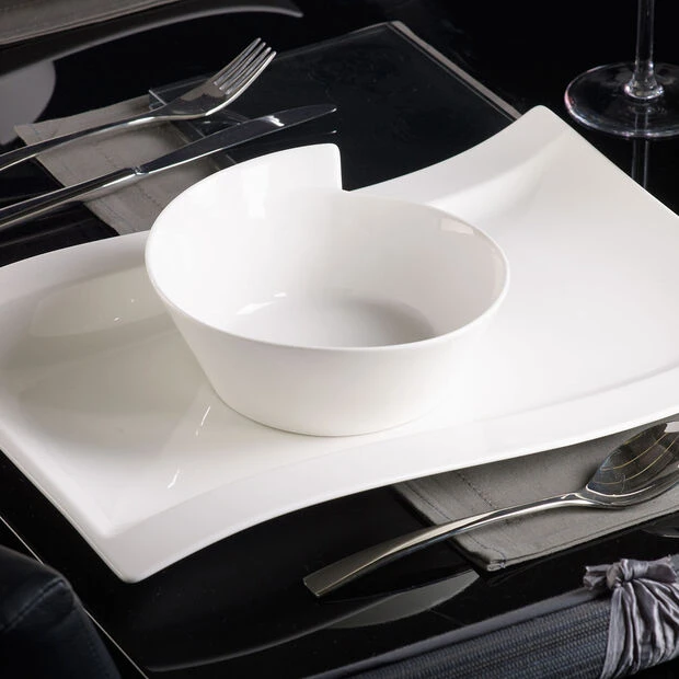 The NewWave collection boasts an asymmetrical shape and curving lines. Awarded the “Trend Dish of the Year”, the decor has been a bestseller from the very start and is a stunning centrepiece on any table. Breakfast muesli, salads, soups or desserts: this pretty bowl is always the right choice. Premium Porcelain. Dishwasher Safe. Microwave Safe. 7″ x 6.5″ x 3″ Holds approx 20.25 oz Made in Germany