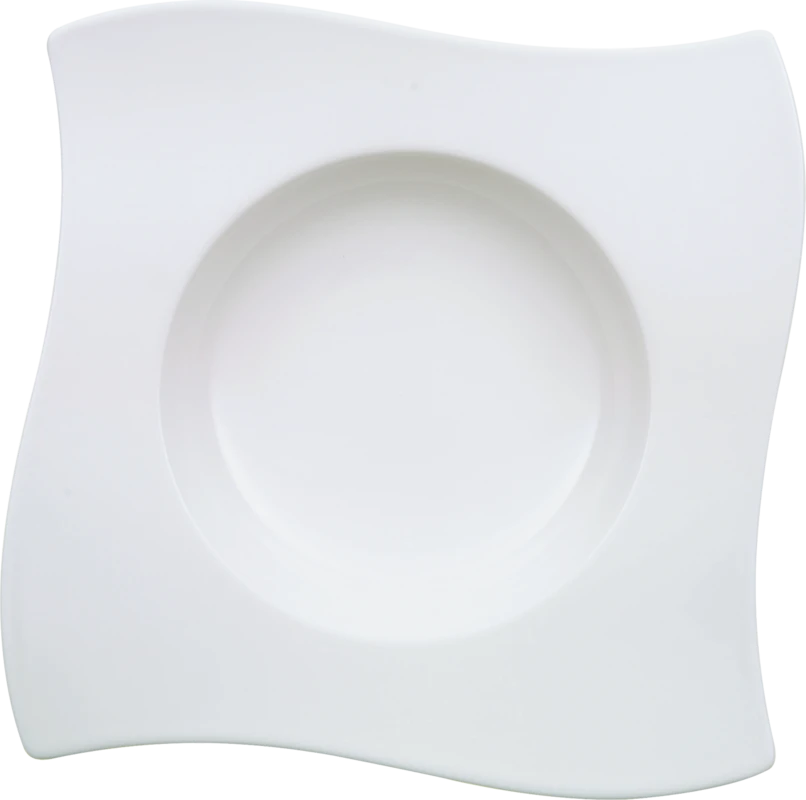 The NewWave collection boasts an asymmetrical shape and curving lines. Awarded the “Trend Dish of the Year”, the decor has been a bestseller from the very start and is a stunning centrepiece on any table. The soup plate is perfect for all kinds of soups, from chilled soups to hearty stews, and makes every meal special. Enjoy in style. Premium Porcelain. Dishwasher Safe. Microwave Safe. 10.25″ x 10.25″ X 1.75″ Holds approx 8 oz Made in Germany.