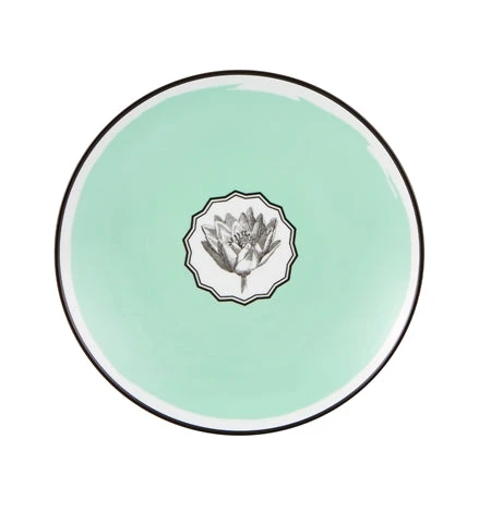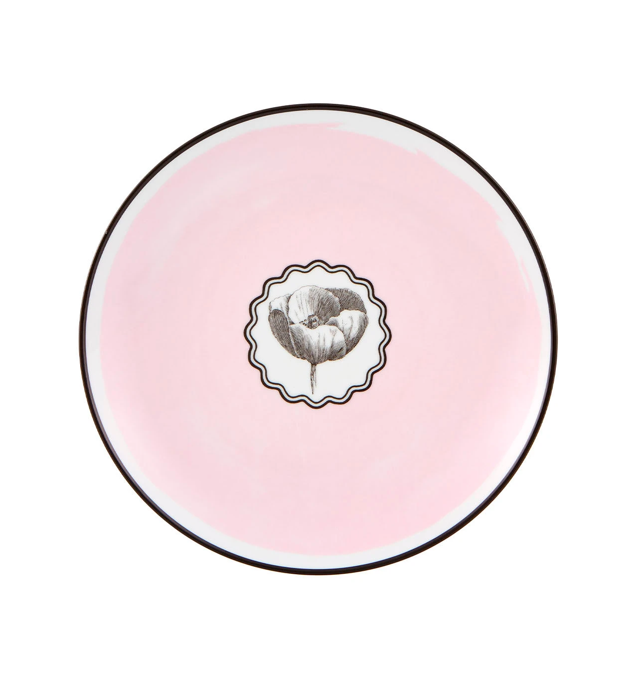 Dessert Plate Pink Herbariae. For this porcelain collection developed by Vista Alegre, Christian Lacroix has imagined a decoration with tropical exuberance. Hand-painted elements