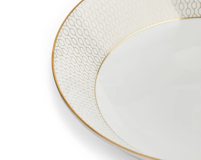Welcome a touch of luxury at lunchtime too, as you savour a steaming bowl of fresh soup or creamy pasta. The golden honeycomb decoration inside the pure white dish is a delight to discover, while the meta; banding on the rim brings an opulent finish.
