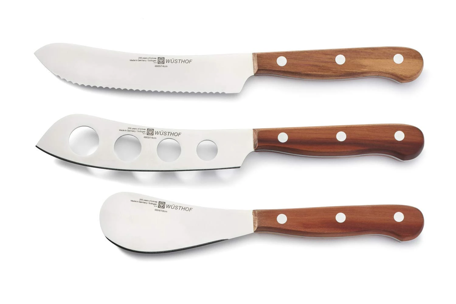 Ideally suited for entertaining, the set contains a 5” Sausage Knife, a 4” Pate Knife and a 5” Soft Cheese Knife. Each full-tang blade is laser-cut stamped, from high-carbon stainless steel that resists rusting, holds its edge, and facilitates sharpening. The new Charcuterie Set is distinguished by the unique assortment of blades combined with a comfortable handle crafted from a rosy-hued plum wood, giving the Three Piece Plum Charcuterie Set a traditional feel that can complement any kitchen or home entertaining setting. Plum wood, which is exceptionally hard and features an attractive, straight grain pattern, is exceptionally durable and comfortable, and provides the set with a striking, on-trend design. For additional durability, the handles are triple riveted to the blade. Unique from traditional cheese knife sets, the Three Piece Plum Charcuterie Set provides an assortment of blades ideal for cured meats, artisan breads and produce, and also provides shoppers with a chic and practical gift appropriate for many occasions, such as graduations, weddings, birthdays, holidays, etc. The Three Piece Plum Charcuterie Set is crafted in Solingen, Germany – WÜSTHOF-TRIDENT’s manufacturing and headquarters base since the company’s founding over 200 years ago. The first WÜSTHOF factory was listed as early as 1814 in official documents of the Duchy of Berg. Additionally, the famous “Trident” logo was first registered in 1895. With a proud tradition that spans 7 generations, the family-owned and managed company continues to uphold its simple mission to create the finest cutlery in the world.