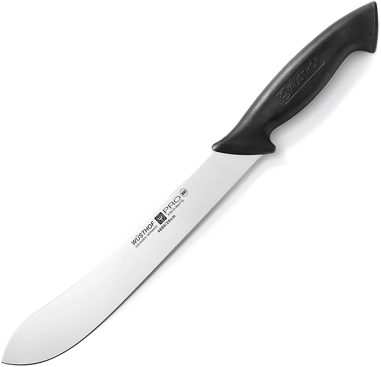Meet all of your kitchen cutting needs with this Pro butcher knife from Wusthof. Made of high carbon steel, the blade features a stain free design. With an ergonomic handle, this knife provides a comfortable and sure grip. Ideal for slicing through cuts of meat, this butcher knife is a great addition to any kitchen.