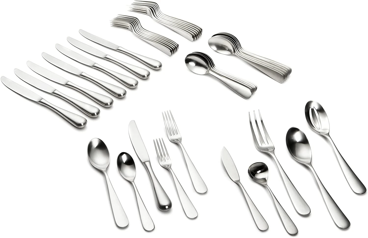 - 45-piece Median flatware set made from 18/10 stainless steel; service for 8 diners